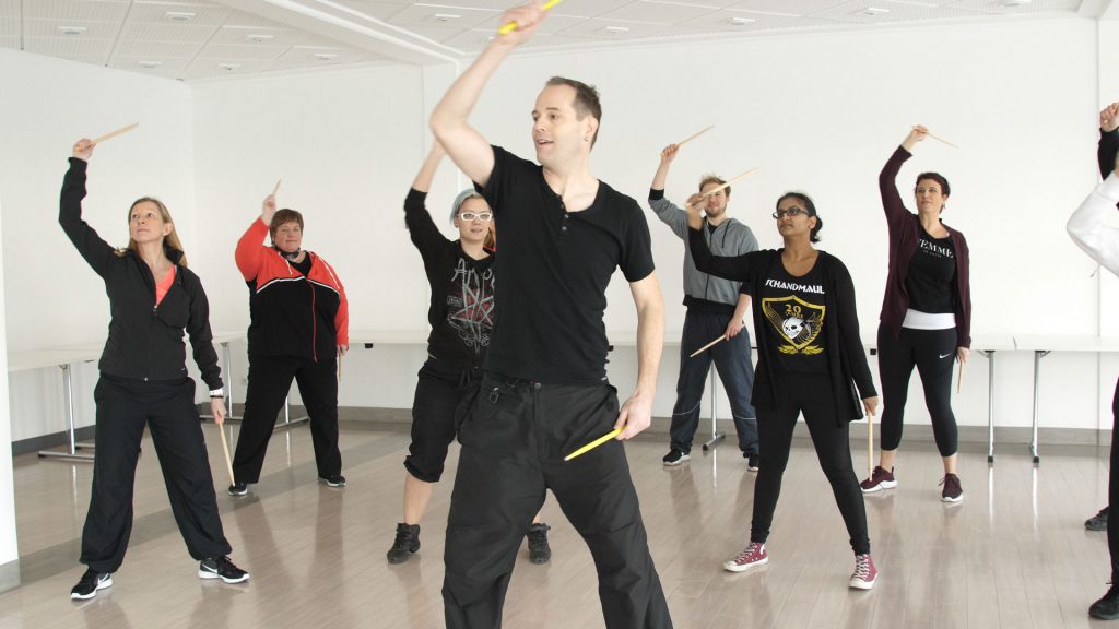Durch Klatschen, mit Schlag- und Shaker-Flaschen und mit Drumsticks trommeln alle gemeinsam zu mitreißender Musik.